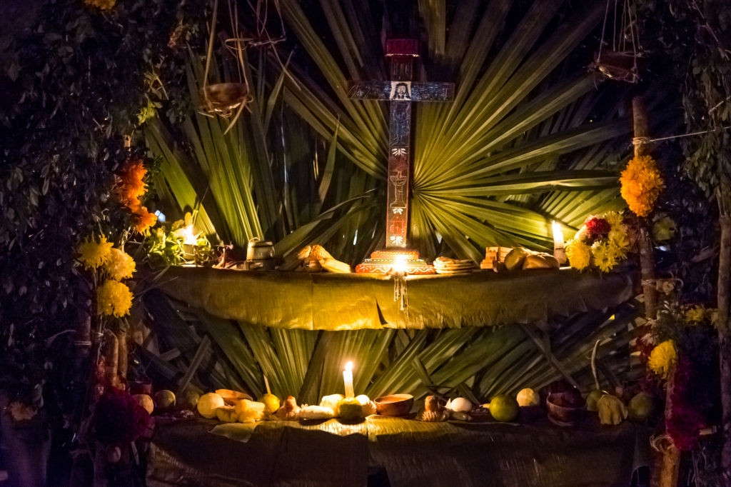 Se pone la tradicional Cruz Verde, normalmente con hojas de palma. Para los mayas, la cruz representa el árbol de la vida. La cruz también coincidió con la iglesia católica occidental.